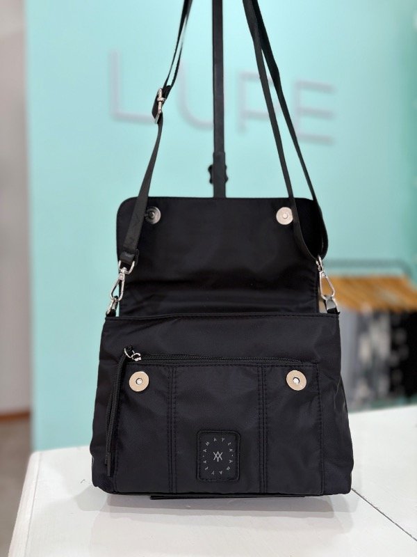 • Bandolera de la línea Amayra fabricada en tela tipo nylon.