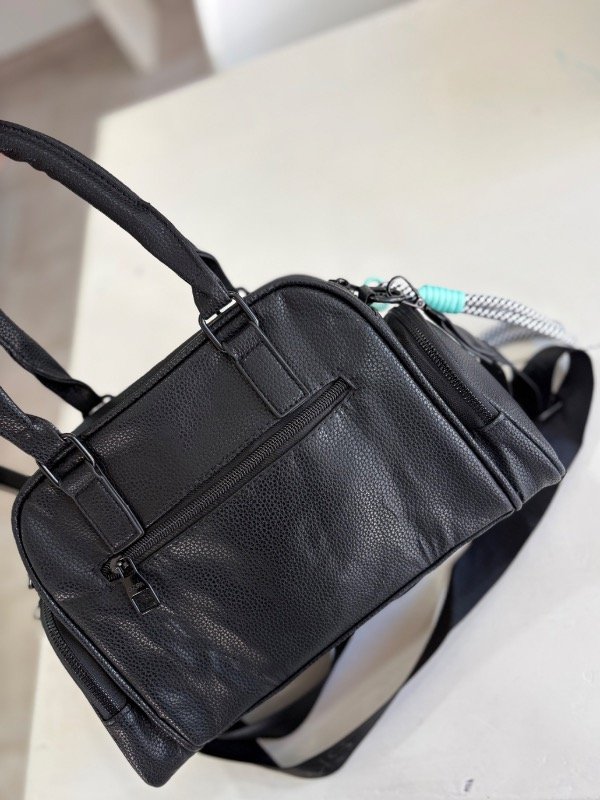 Cuenta con amplio compartimento principal y bolsillos frontales con cierre que facilitan la organización de tus pertenencias. Incluye correas regulables y desmontables que permiten usarla como cartera de mano o bandolera según tu preferencia.
