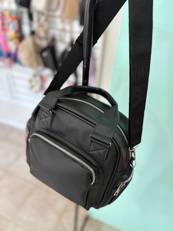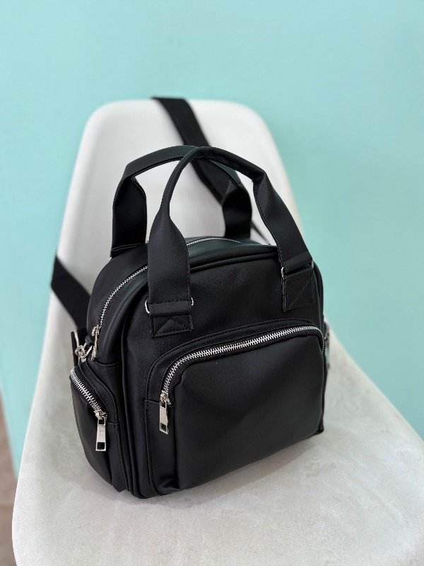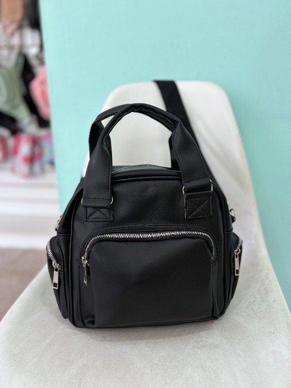 • Bolsillo frontal, bolsillos laterales y bolsillo trasero, todos con cierre.