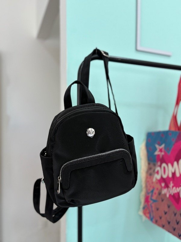 • Ingreso por cierre, compartimiento principal con interior forrado y bolsillo interno.