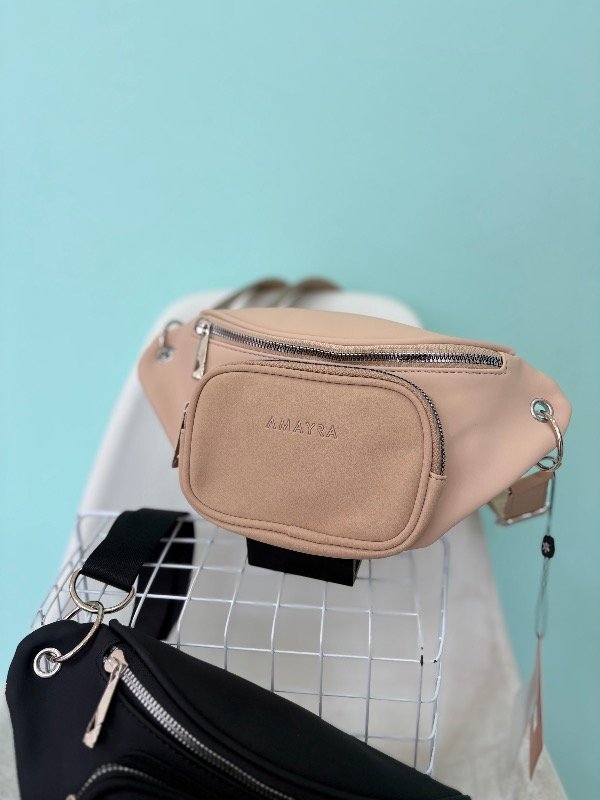 • Nueva riñonera de la línea Amayra fabricada en cuero sintético engomado.