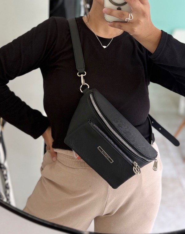 • Nueva riñonera de la línea Amayra fabricada en cuero sintético.