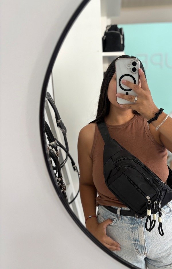 • 4 compartimentos. Uno principal + 2 bolsillos frontales y bolsillo trasero.