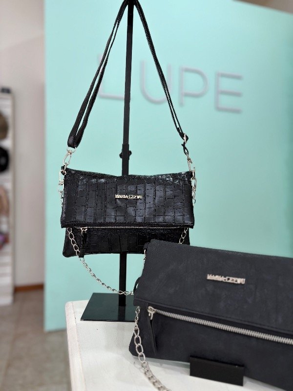 Diseñada con cuero sintético de alta calidad, su interior está forrado en un sofisticado color negro. Esta bandolera destaca por sus dos correas desmontables: una correa larga regulable de 1.30m y una correa corta de cadena, brindando versatilidad para diferentes ocasiones.