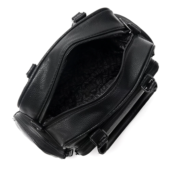 Cuenta con amplio compartimento principal y bolsillos frontales con cierre que facilitan la organización de tus pertenencias. Incluye correas regulables y desmontables que permiten usarla como cartera de mano o bandolera según tu preferencia.