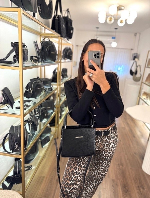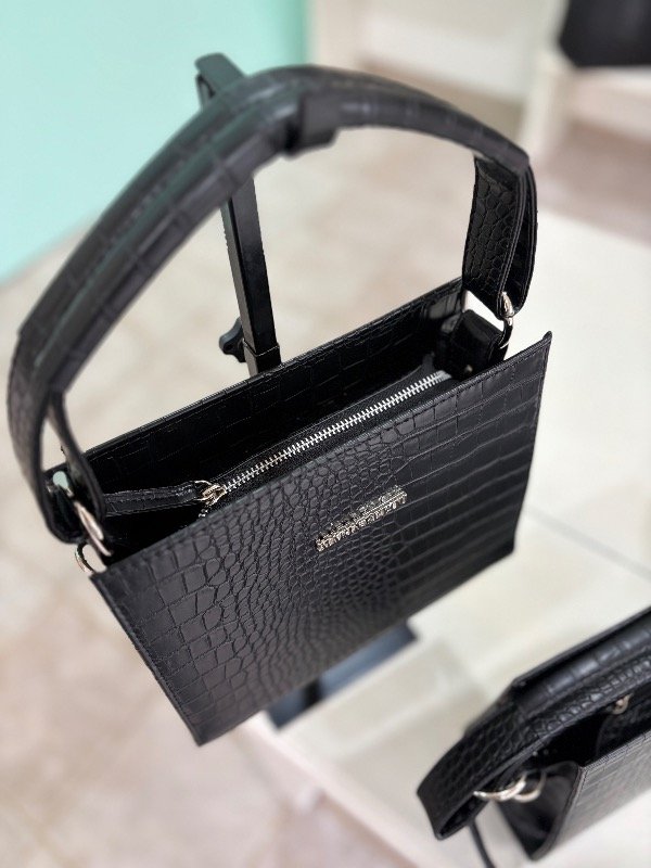 Descubrí la elegancia y funcionalidad de la Bandolera Rose negra croco, un accesorio imprescindible para complementar tu estilo diario.