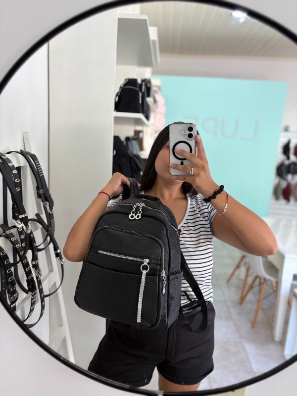 • Mochila importada fabricada en cuero sintético.